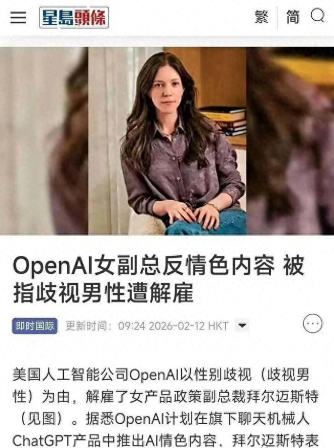 不久后,她收到了公司的衔命见知,官方根由是“对男性共事存在性别颓靡”。但外界很快发现,这起看似职场纠纷的背后,藏着更横暴的矛盾——贝默斯特此前屡次公开反对OpenAI策画在ChatGPT中推出的“成东谈主花式”,而这一花式,恰是公司对准的新盈利增长点。